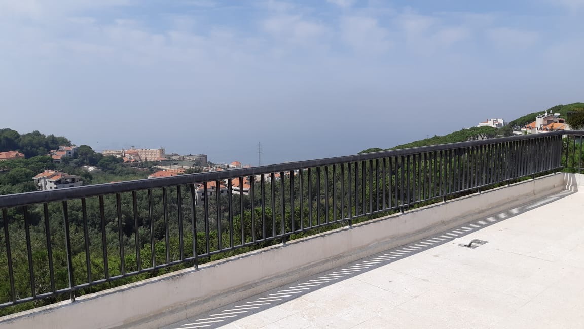 Duplex for sale in Broumana enjoying a panoramic sea and moutain view. This 275 sqm flat consists of 4 bedrooms including 1 master, 5 bathrooms. 3 living rooms, 1 dining room opening onto a large terrace, 1 kitchen with maid room. 2 large storage. 1 basement room, 2 parking lots. Complex with gate and 24H security. Tennis court, trees and walking area.