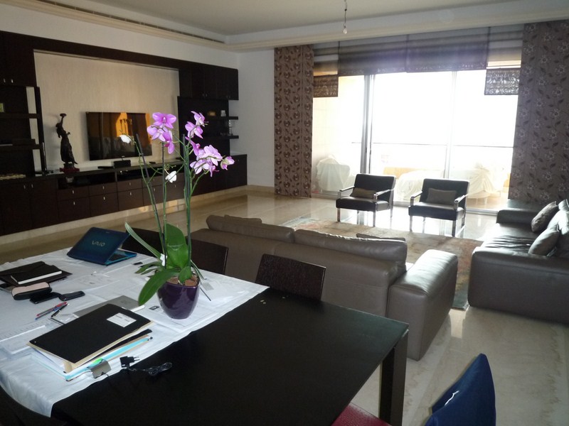 In a residential area of Solidere and well secured, very nice appartement of 230 sqm with a sea view and a large teracce. A double living room and a dining room. There is 2 master bedrooms with their bathrooms and dressing. Parking place underground and guard.